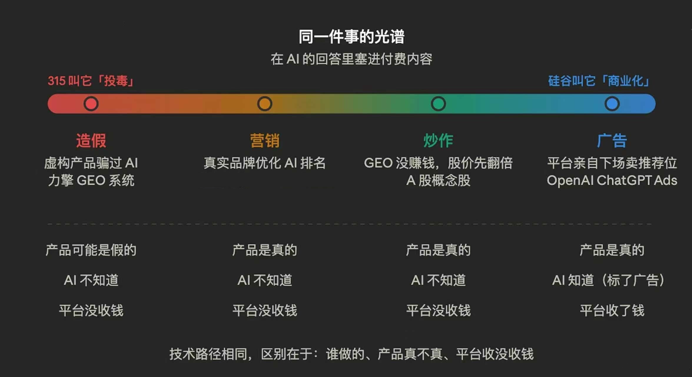 同样是“让AI推荐自己的产品”,凭什么在硅谷,它是改变商业格局的颠覆性创新;到了国内,却异化成了批量制造垃圾、操纵消费者决策的“投毒骗局”?
